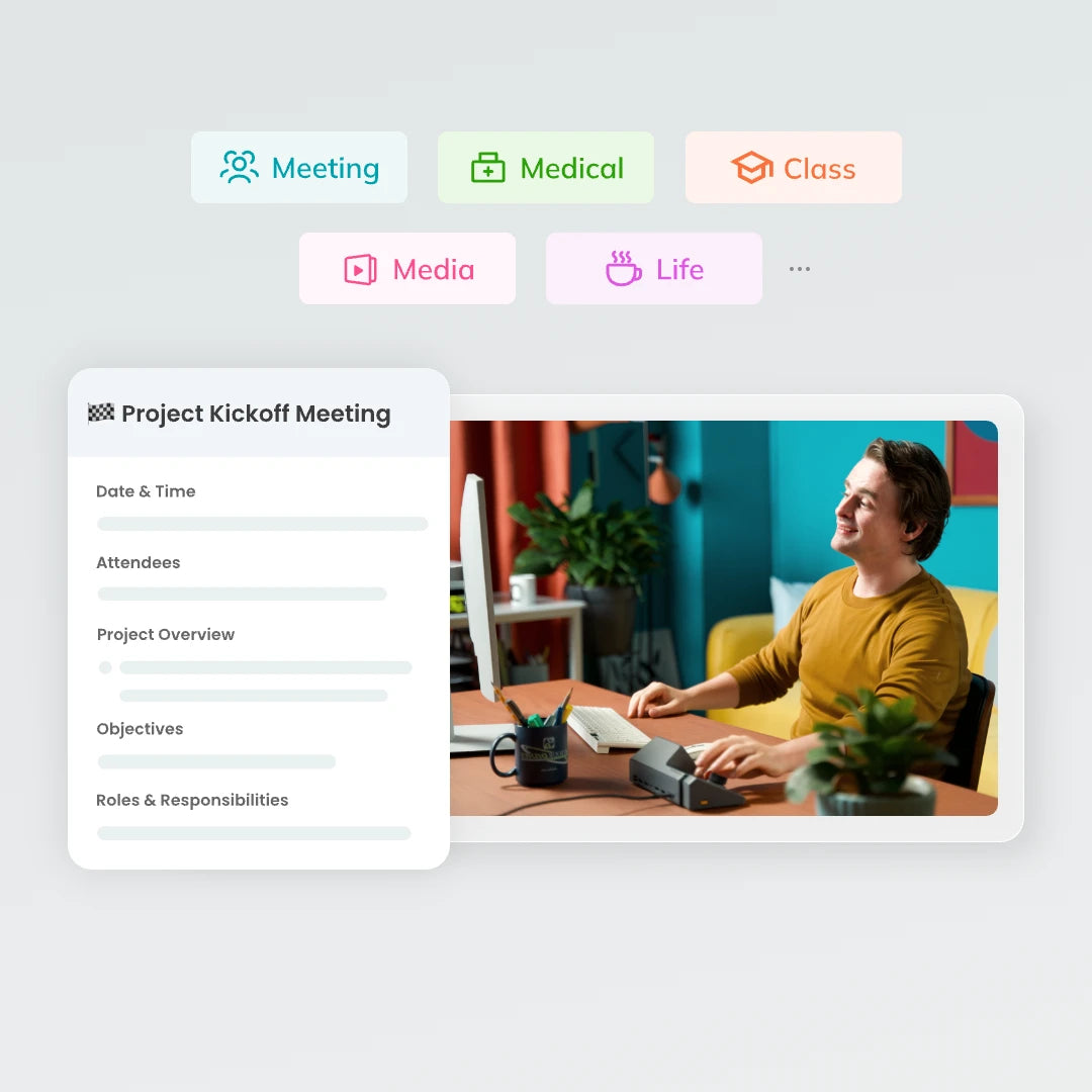 Not all the meetings are the same! HiNotes extracts summaries tailored to a variety of recordings. Customize your meeting summary based on the meeting type.